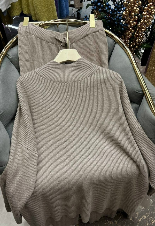 - 0797 (95) ️Длина: свитер 70см.,брюки 108 см. ️Ширина: Свитер 70 см.,брюки 50 см. ️Цвета: Кофе,серый ️
