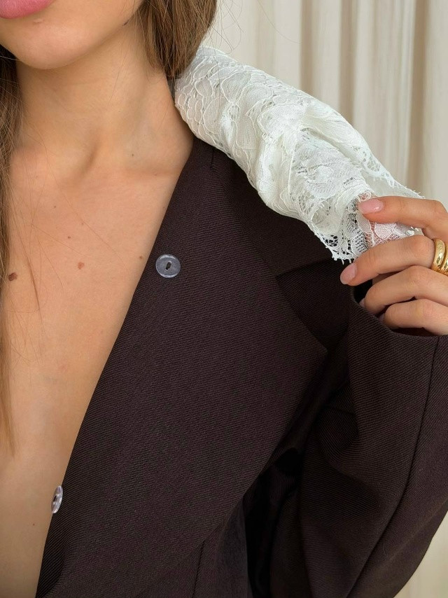 - 2600₽ Цена опт (от 4х штук): 2500₽ Пиджак с ажурным воротником (воротник съемный)