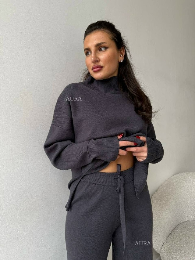 - 0743 (69) Свитер: длина 68 см,ПОГ 68 см ️Брюки: длина 105 см,ПОБ 48 см Цвета: Графит, марсала, шоколад, бежевый