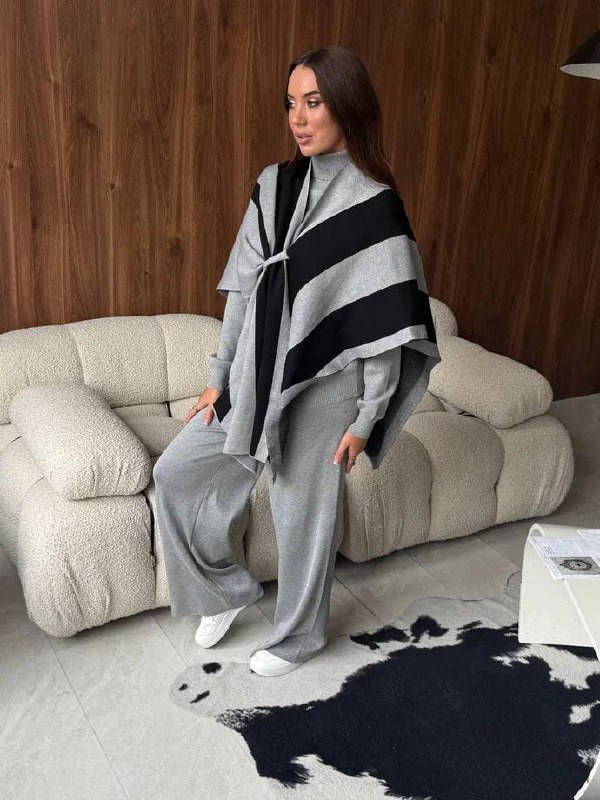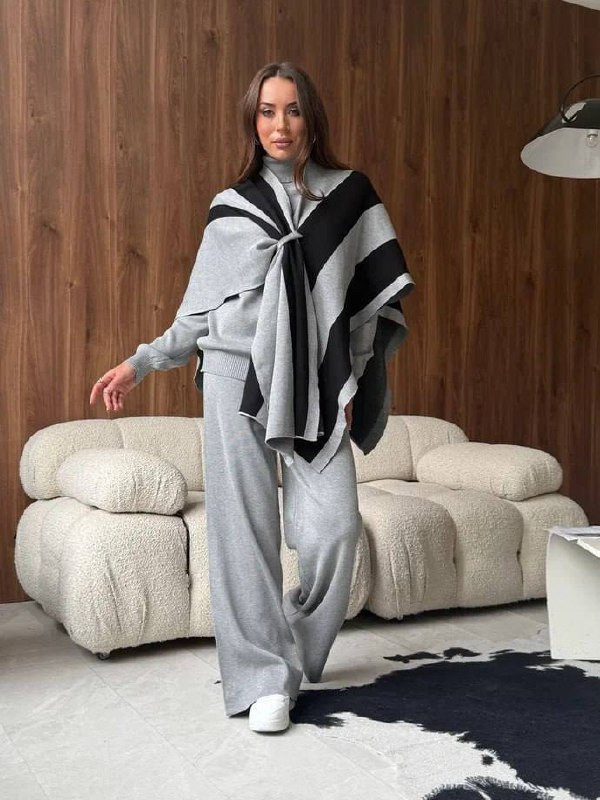 - ✨КОСТЮМ ТРОЙКА✨ (водолазка, брюки и пончо) 🎀Стиль, комфорт и универсальность в одном комплекте! 💖Арт. 9528 🤍Цена: