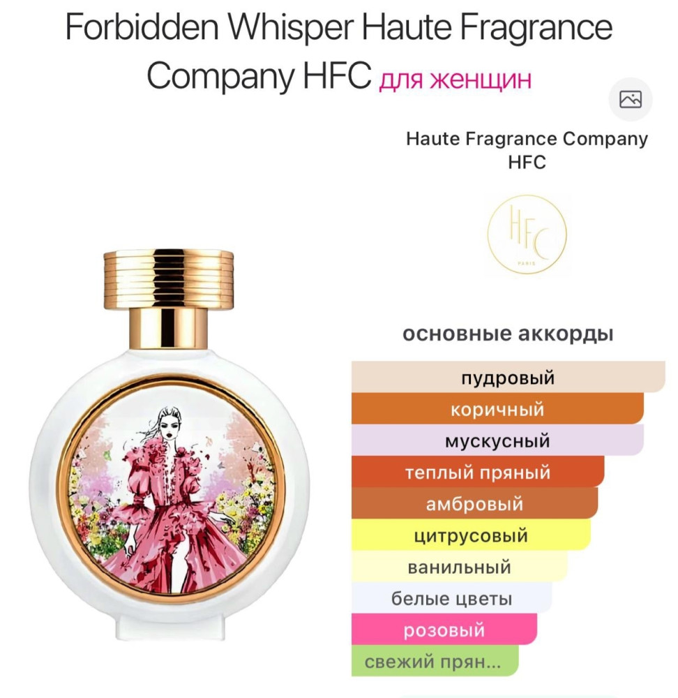 🌸🤍🌸 НОВИНКА 🌸🤍🌸 💐 Forbidden Whisper Haute Fragrance Company HFC — это аромат для женщин, он принадлежит к группе восточные цветочные. Это новое издание: Forbidden Whisper выпущен в 2025 году. Парфюмер: Elise Pierre. 🌙 🌷 Верхние ноты: Корица, Сицилийский мандарин и Имбирь; средние ноты: Жасмин, Болгарская роза и Пудровые ноты; базовые ноты: Мускус, Амбра и Бурбонская ваниль.🌸 😍Он начинается мягким, почти интимным шёпотом — тонкие, бархатные ноты раскрываются постепенно, будто приглашают приблизиться ещё на шаг.👠 🌸 В его звучании есть что-то запретно-притягательное: сладость не становится приторной, дымка не уходит в мрак, а пряность не перебивает нежность. 🌿 🩷 Всё идеально сбалансировано — аромат будто создан для того, чтобы оставаться на коже как тёплый след воспоминания.👩❤️👨 💐 75ml 🌷 2400₽ 💐 Качество А+Д 💣 ⚜️ Садовод 9-88 🛍️ ▪Для заказа пишите в ✏WhatsApp👇 wa.me/9262655010 #MAX/9262655010 🎊Подпишитесь на нашу группу t.me/stambulparfum  Товар добавлен: 19.02.2026 10:30:45 Источник: vk.com/stambulparfum?w=wall568826797_6373
