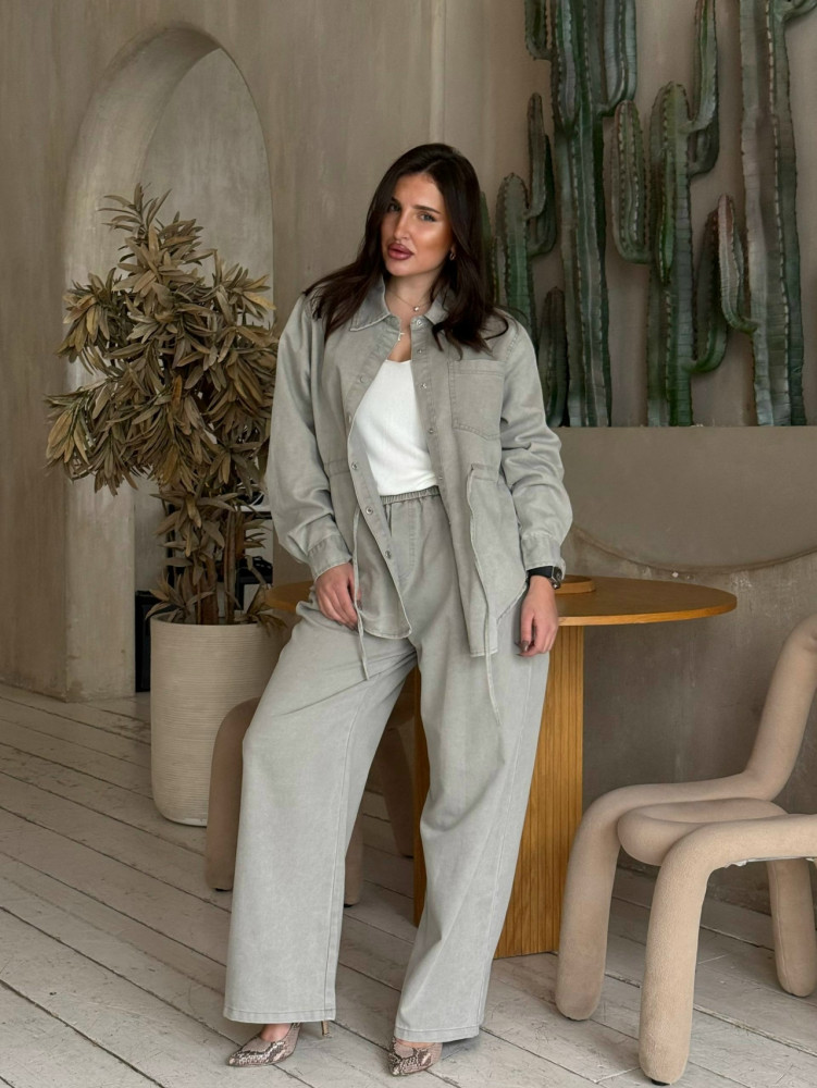 - •НОВИНКА Джинсовый костюм состоит из рубашки на кулиске и брюк прямого кроя Брючный комплект создан из хлопка , что делает его комфортным и очень приятным к телу. Возможность носить элементы раздельно -это важное преимущество •️Артикул: