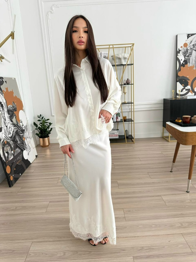 - 💫🩶Шикарный шелковый костюм с гипюром: